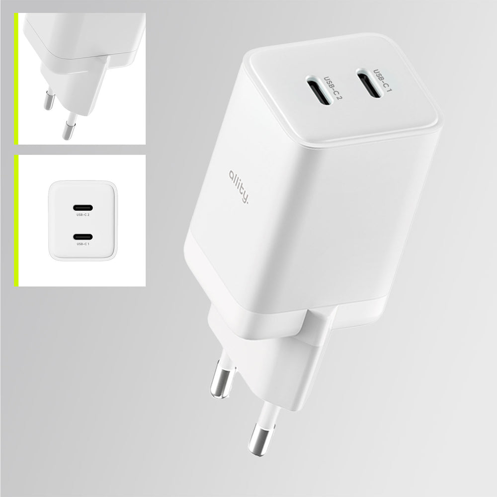 Allity wall charger GaN PD QC ATC-01-45WCC 2x USB-C 45W white .