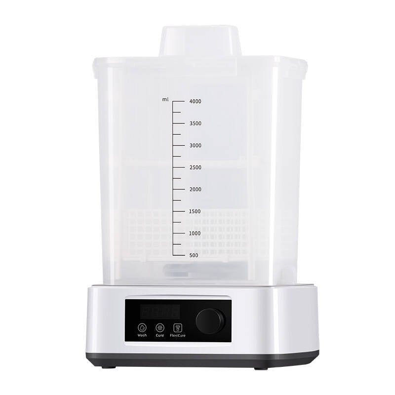 The capacity of the device's basket is 3 l, and the total capacity of its cleaning module is as much as 4 l. Thus, with its help you can easily clean prints up to 165 x 100 x 180 mm (in the basket) or up to 165 x 100 x 165 mm (with the platform). On the other hand, the dimensions of the curing space are 160 x 180 mm.