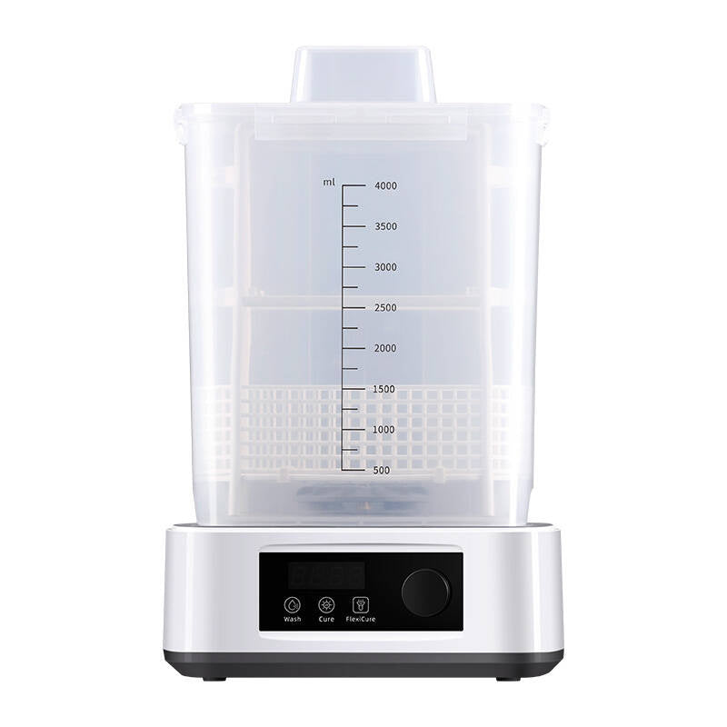 The device allows you to choose from 3 modes of operation, such as washing, curing and FlexiCure enhanced curing using the included UV lamp. You can also adjust the cleaning and drying time from 1 minute to 30 minutes. The Wash & Cure 3 model is operated with a convenient-to-use dial and touch-sensitive buttons.