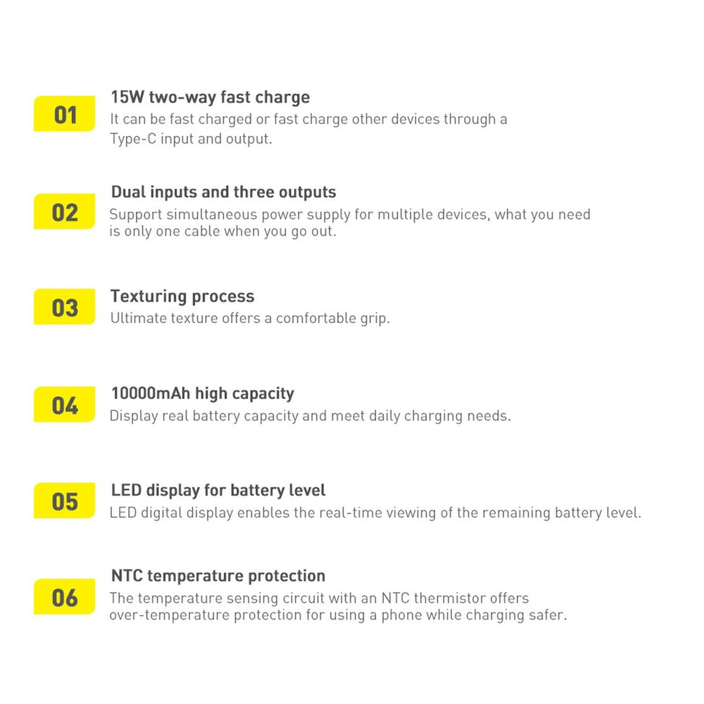 The Baseus power bank will surely provide you with support in many situations. You don't have to worry about the battery of your phone or tablet. Access to an additional, independent power source will allow you to charge the equipment anywhere - in the office, on the go or outdoors. Powerbank has everything you need - fast charging function, low energy consumption. Be sure to take a closer look at it!