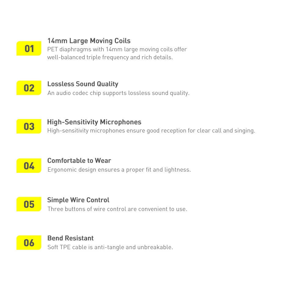 In addition, a long, flexible cable and a practical remote control placed on it, allowing you to quickly switch between songs, control the volume and receive phone calls with a single button. The whole thing is made of high-quality materials (PC).