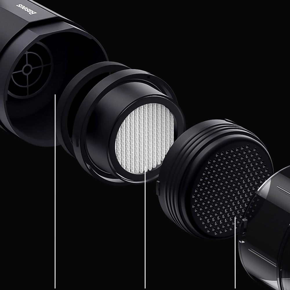 The Baseus car vacuum cleaner is a small, handy cordless vacuum cleaner. It is characterized by impressive efficiency. An efficient 80W motor allows you to achieve a working pressure of 6000Pa. This ensures high efficiency when removing small impurities, e.g. sand, dust, crumbs or animal hair. The cigarette lighter plug will allow you to get rid of dust in the car even on the road.