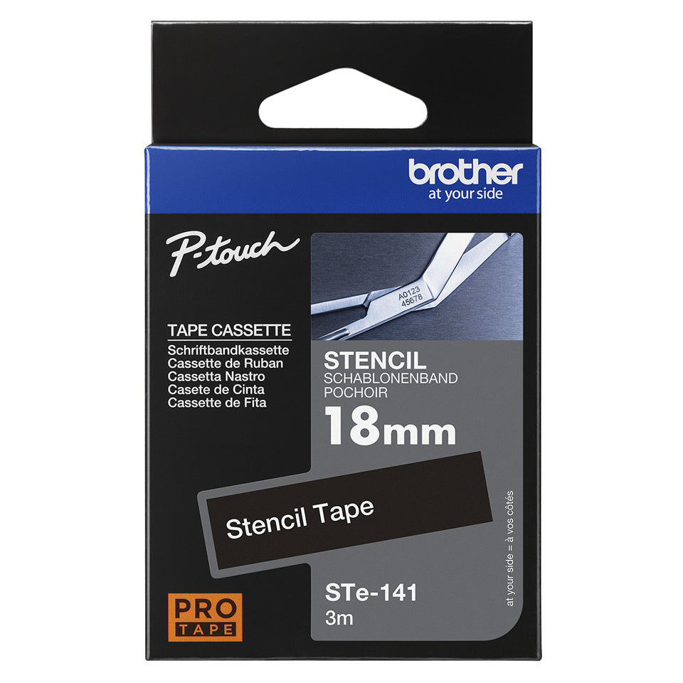 Brother STE-141. Antal etiketter i pakning: 1 stk, Båndtype: TZ/TZe, Produktfarve: Sort. Båndbredde: 1,8 cm, Bredde: 26 mm, Dybde: 72 mm. Pallens bruttohøjde: 15,2 cm, Hovedkasser pr. palle (udvendigt): 240 stk, Lag pr. palle: 12 stk