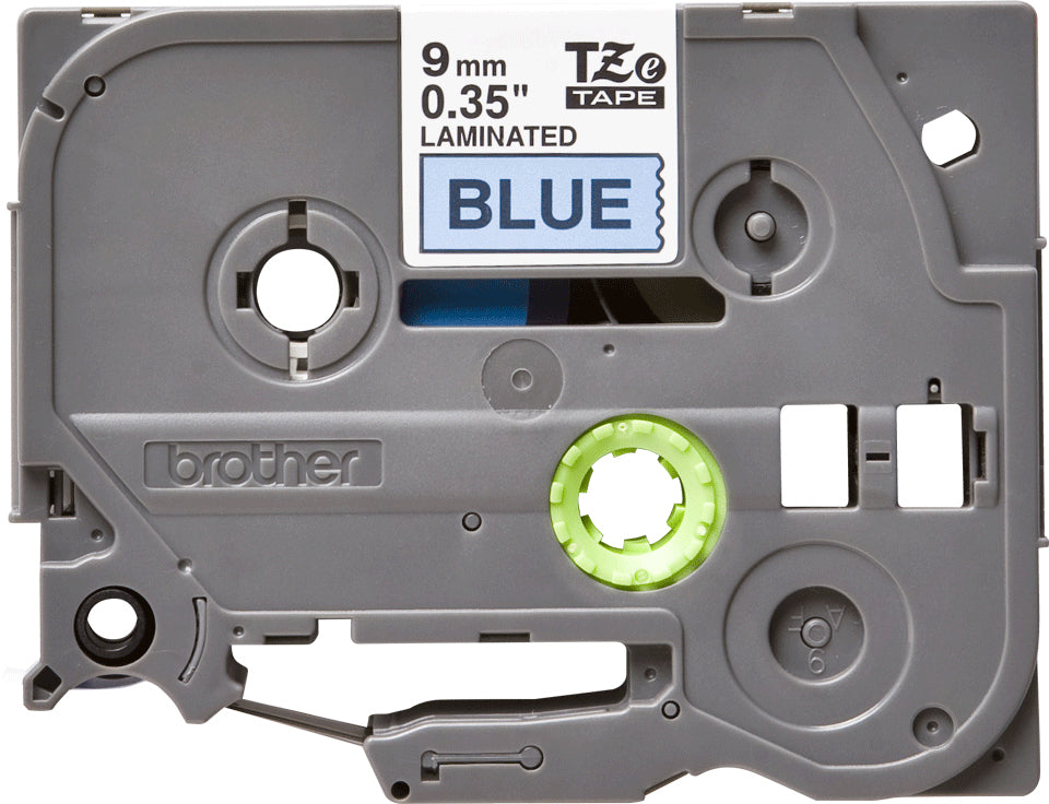 Brother TZE-521. Etiket, farve: Sort på blå, Båndtype: TZe, Produktfarve: Sort. Båndbredde: 9 mm, Båndlængde: 8 m, Bredde: 27 mm. Pallens bruttohøjde: 16,2 cm, Hovedkasser pr. palle (udvendigt): 36 stk, Lag pr. palle: 6 stk