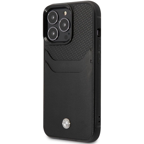 Case BMW BMHCP14X22RSEPK iPhone 14 Pro Max 6.7" sort/sort Læder Card Slot .