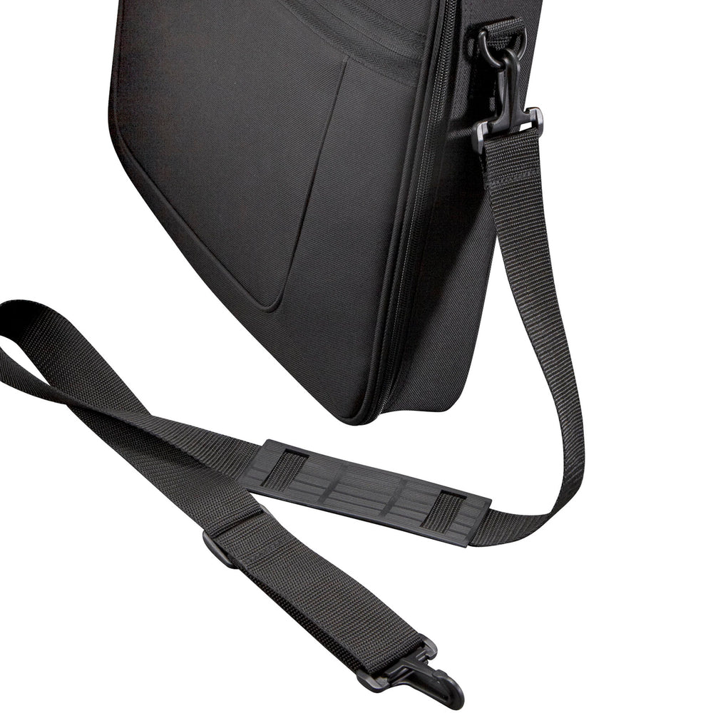 Muslingeskal-design giver denne taske mulighed for at åbne fuldt ud for størst mulig adgang til din bærbar