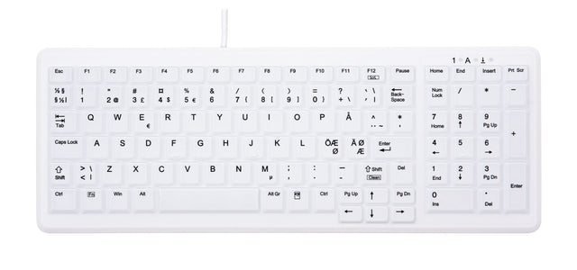 CHERRY AK-C7000. Tastatur stil: Lige. Forbindelsesteknologi: Ledningsført, Enhedsgrænseflade: USB, Tastatur nøglekontakt: Saksnøglekontakt, Tastaturopsætning: QWERTY, Anbefalet brug: Medicinsk. Produktfarve: Hvid