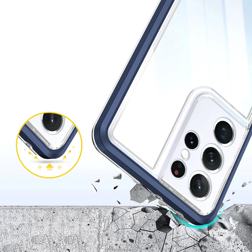Clear 3in1 Case til Samsung Galaxy S21 Ultra 5G Frame Gel Cover Blå .