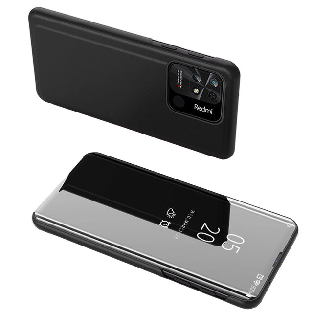 Shiny Xiaomi Redmi 10C flip cover from the Clear View Case series in black