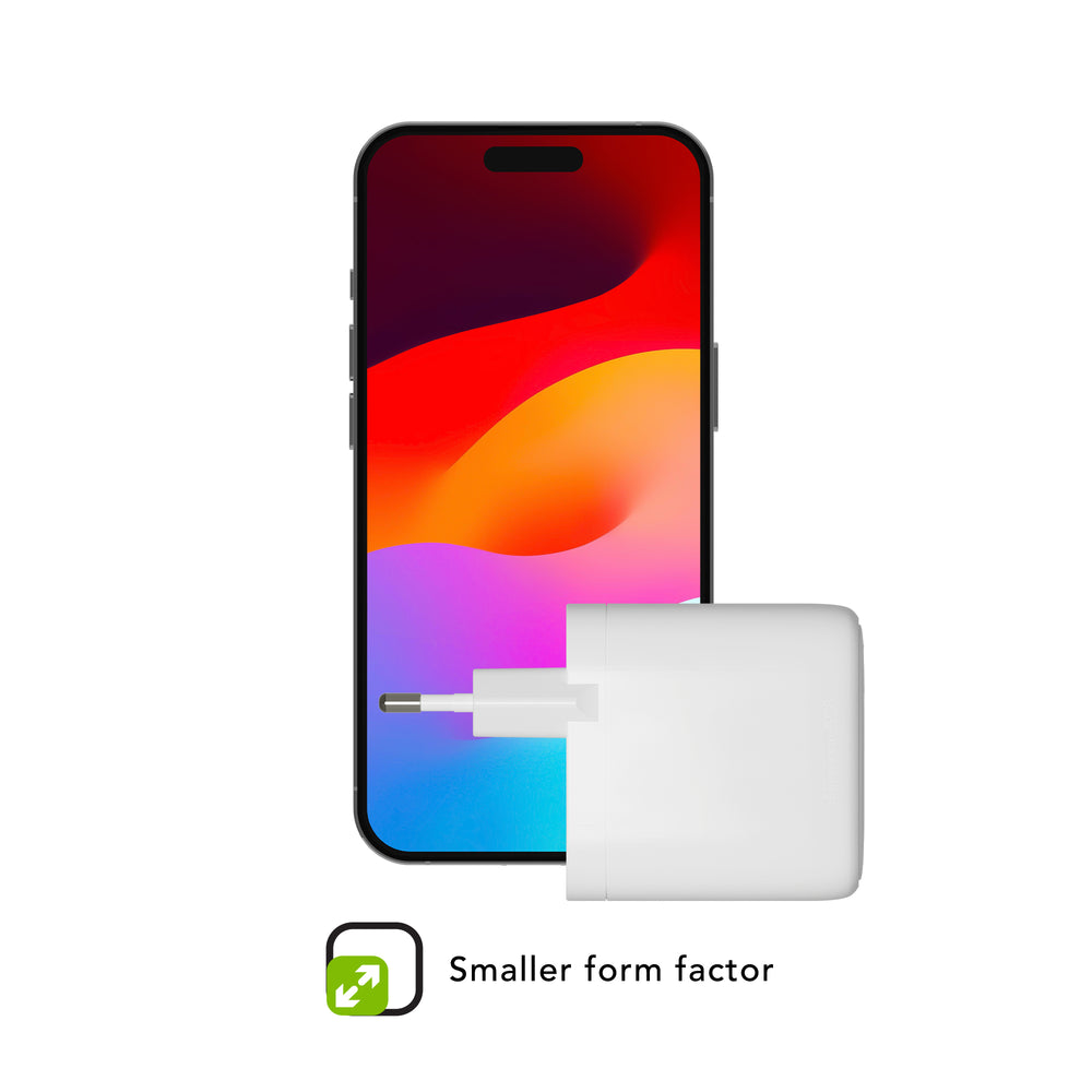 - Integreret GaN-teknologi giver en effektiv opladning med høj effekt, som ikke overopheder.