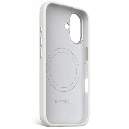 DECODED IS A TIMELESS DESIGN Decoded creates luxury accessories for mobile devices that stand out with a harmonious combination of classic design and advanced functionality. Each Decoded case is finished with delicate accents that give it a unique look. PROTECTION IN GOOD STYLE The Decoded case is made of high-quality liquid silicone, characterized by a silky smooth finish. The use of such a material enhances the color of the case, which becomes a unique style accent. ABSORBS SHOCKS The apparent delicacy of silicone in reality shows resistance to the effects of impacts and provides the perfect combination of lightweight design with complete protection of the iPhone. The internal structure of the case effectively absorbs the force of impact, so that when the phone falls in the case, the device remains intact. The case is made of silicone with antibacterial properties. NO SCRATCHES Put and move your phone without worries on a desk, table or other flat surface. The case has a two-layer, anodized, metal ring around the camera, thanks to which the lenses are protected from scratches. MAGSAFE AND WIRELESS CHARGING Thanks to the magnetic module built into the case, it is compatible with the MagSafe functionality, and with most wireless chargers. The case ensures precise positioning of the phone at the charging point on the MagSafe wireless charger. Just place the phone on the charger matrix, and both devices will fit together perfectly, providing stable charging.