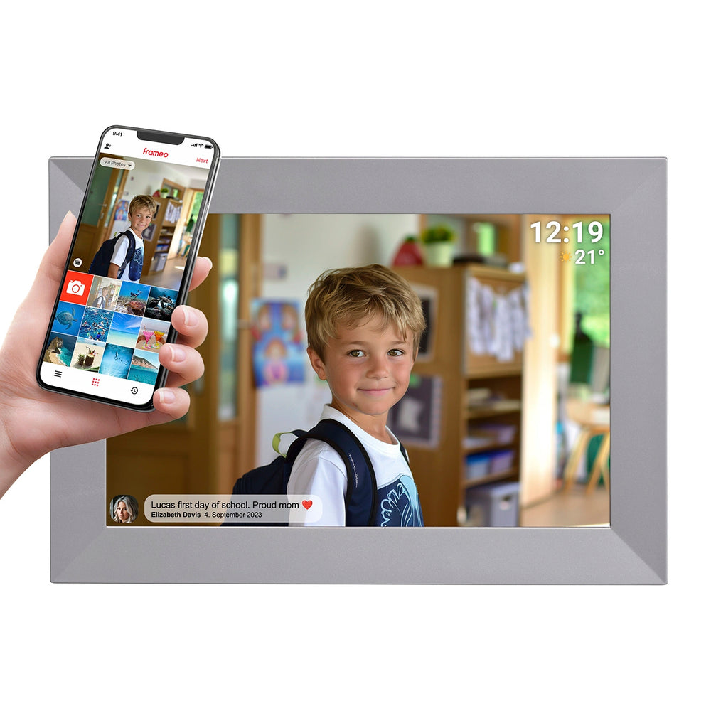- Modern photo and video sharing with Frameo: The frame lets you easily share photos and videos directly from your phone, making it the perfect solution for sharing memories with family and friends, even when they're far away.
