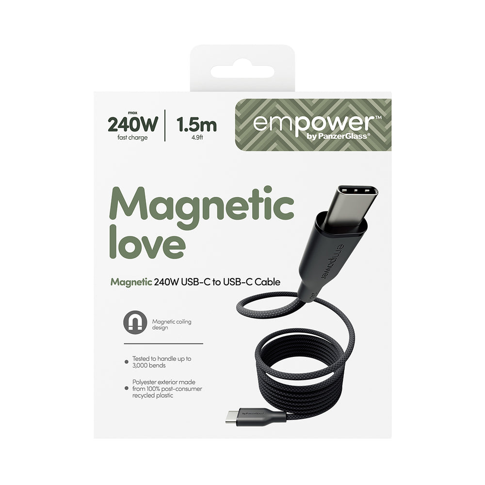 PanzerGlass empower by ® Magnetic 240W USB-C to USB-C Kabel | USB 2.0 | 1.5M | Space Black, Universel, Universal - Universal, Tør påføring, Sort, 1 stk