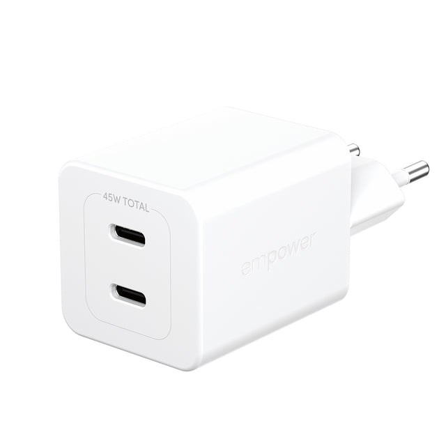 empower by PanzerGlass® Turbo 45W Oplader inkl. 2 x USB-C | EU Stik | Silver White