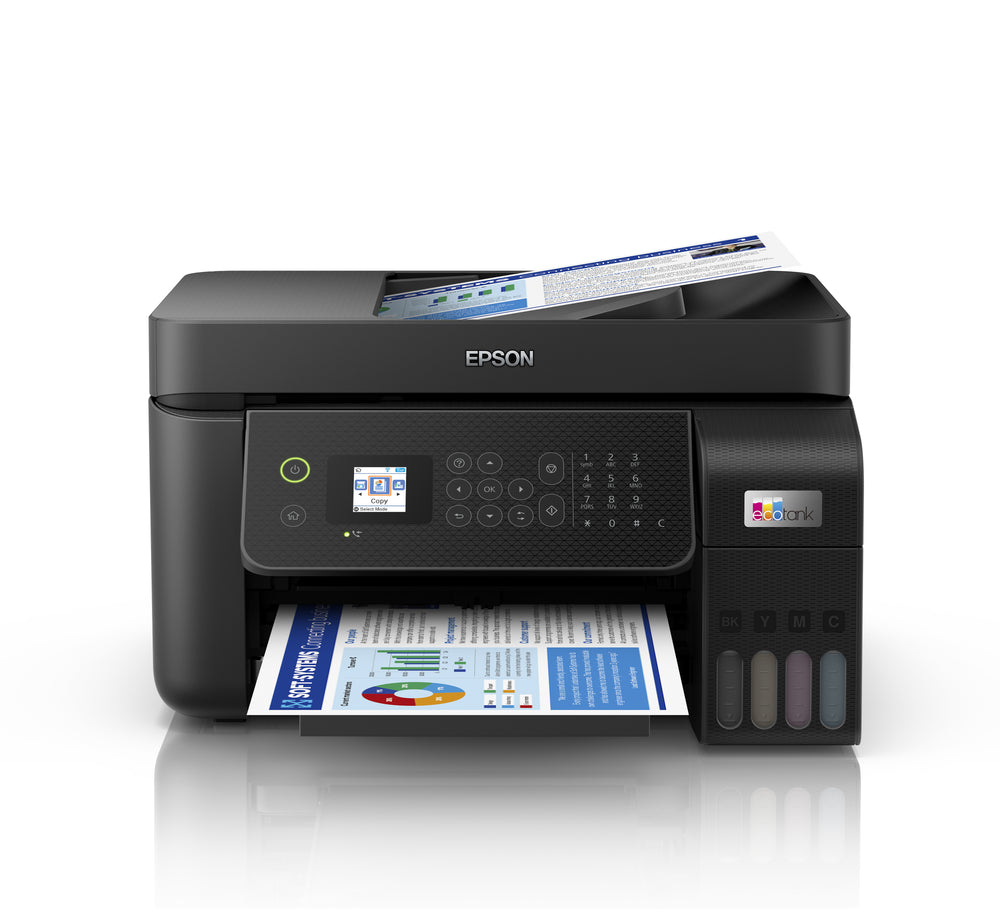 Epson EcoTank ET-4800. Udskrivningsteknologi: Inkjet, Udskrivning: Farveudskrivning, Maksimal opløsning: 5760 x 1440 dpi, Udskrivningshastighed (farve, normal kvalitet, A4/amerikansk papirformat): 15 sider pr. minut. Kopiering: Farvekopiering. Scanning: Farvescanning, Optisk scanningsopløsning: 1200 x 2400 dpi. Fax: Monofaxing. Duplex-funktioner: Udskriv. Maksimal ISO A-serie papirstørrelse: A4. Wi-Fi. Direkte udskrivning. Produktfarve: Sort