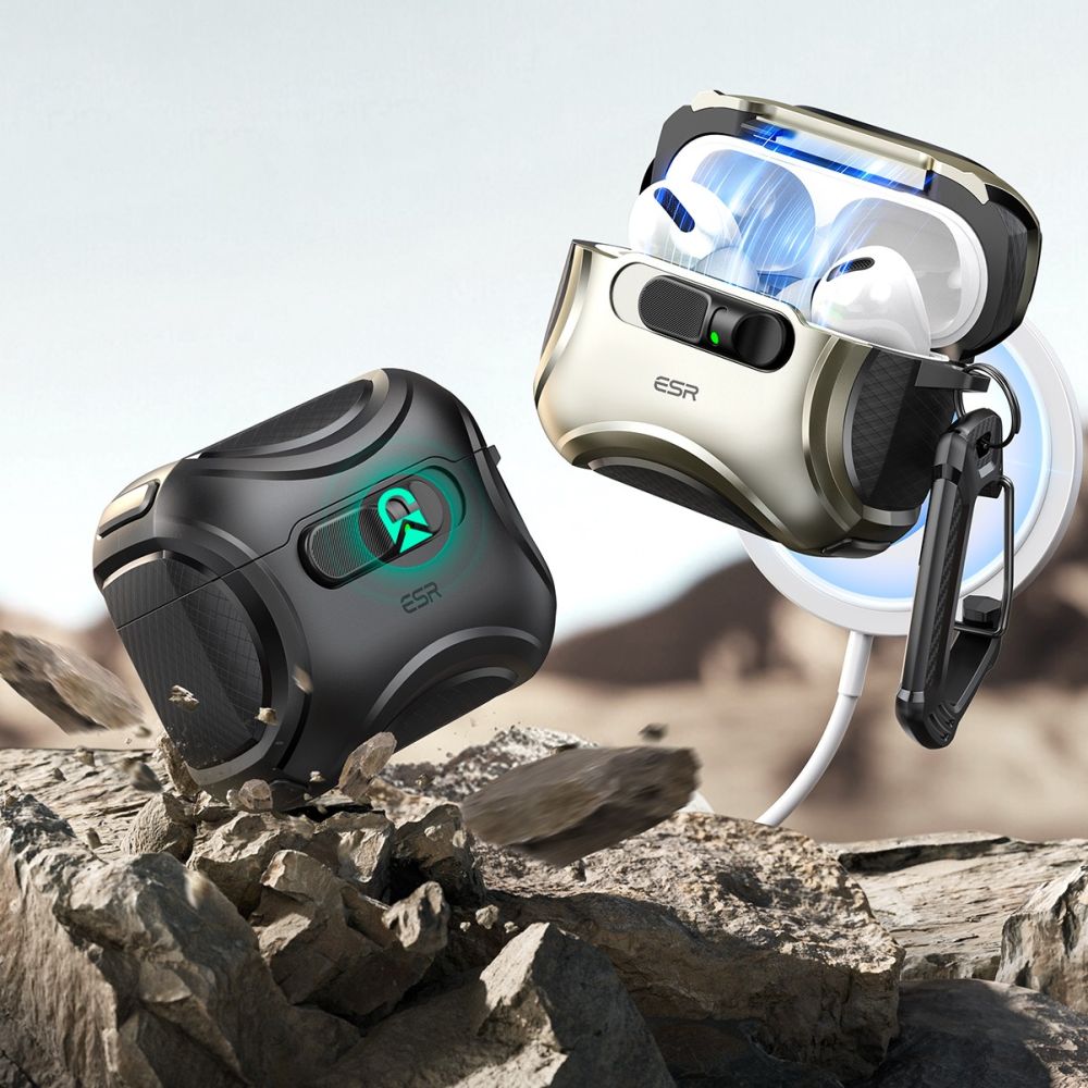 Mechanizm Slide to Open umożliwia błyskawiczny dostęp do słuchawek — wystarczy przesunąć przedni suwak, aby magnesy się odblokowały i pokrywka automatycznie się otworzyła, pozwalając na obsługę jedną ręką. Wbudowany system MagSafe gwarantuje stabilne połączenie z ładowarkami MagSafe, dzięki czemu ładowanie bezprzewodowe jest szybkie i wygodne. Całość uzupełnia mocna ochrona 360° – odporne na wstrząsy tworzywo i wzmocnione narożniki Air Guard skutecznie zabezpieczają etui ładujące przed upadkami i uderzeniami.