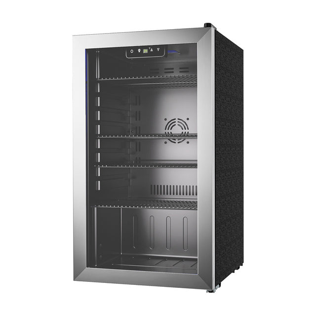 Thanks to 360° Full-Angle Cooling technology, the refrigerator evenly distributes cool air inside the chamber. This means that every can, regardless of its position, is properly cooled. The cooling system is based on a circulating fan that works in conjunction with an electronic thermostat. A temperature range of 0°C to 16°C allows the cooling to be adjusted to the type of beverages - from milk, cola and beer to sparkling wine.