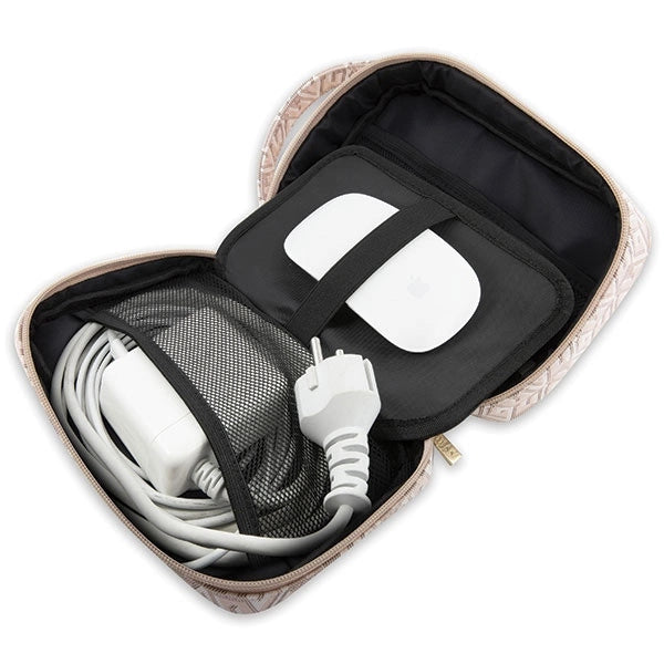 The interior of the bag is extremely functional - numerous compartments allow you to conveniently store the necessary small accessories. The bag has an external port terminated with a USB connector, and the inside of the bag hides a cable terminated with a USB connector.