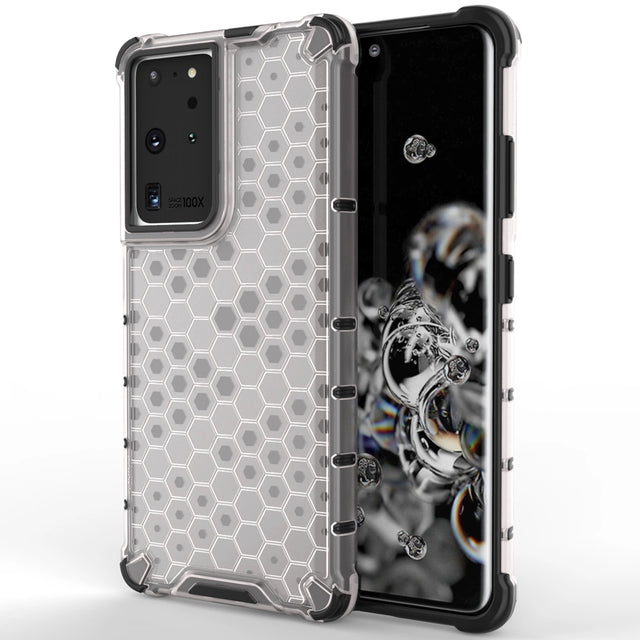 Honeycomb case pansret cover med en gel ramme til Samsung Galaxy S22 Ultra gennemsigtig .
