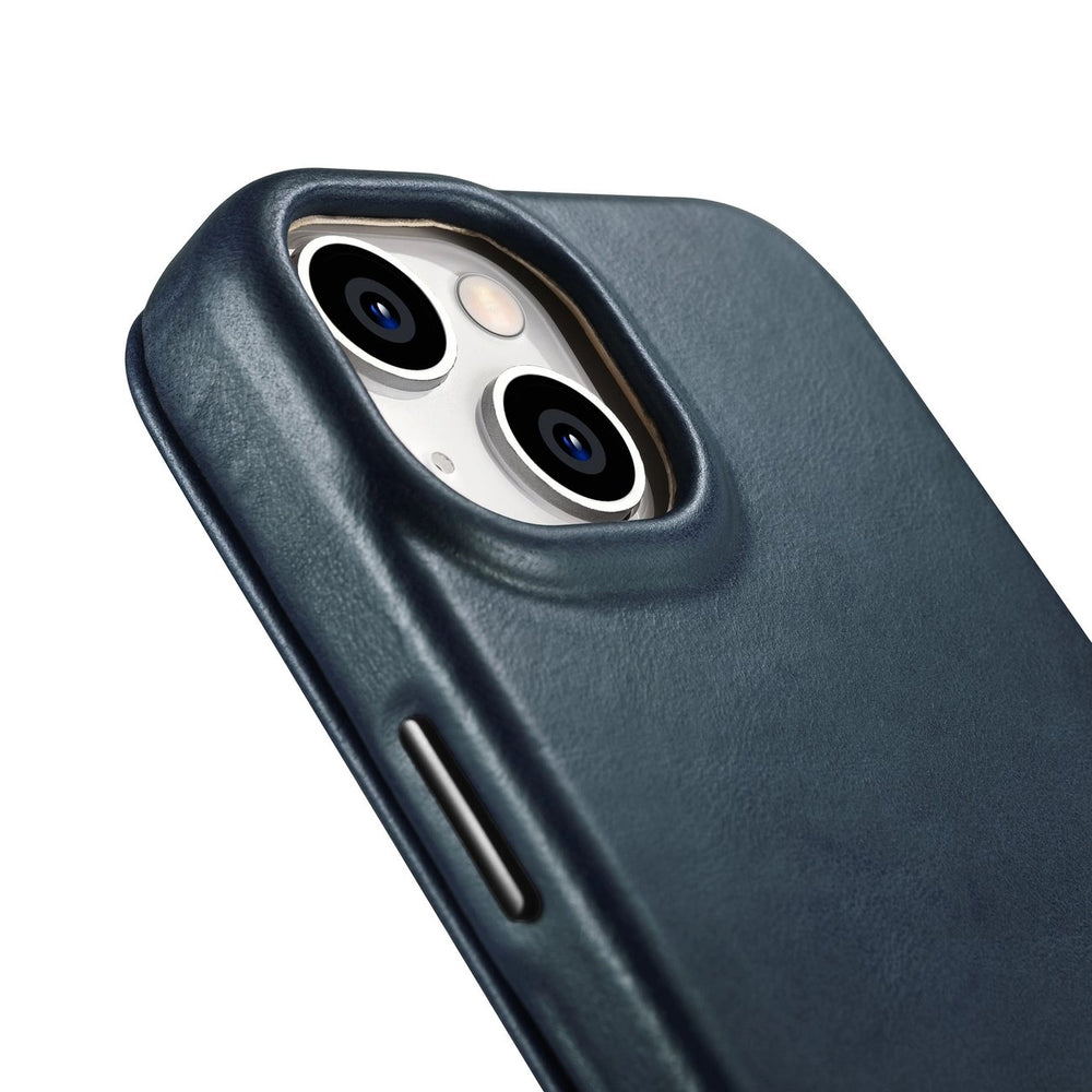 iCarer CE Oil Wax Premium Leather Folio Case iPhone 14 Plus magnetisk flip case MagSafe blå (AKI14220707-BU) .