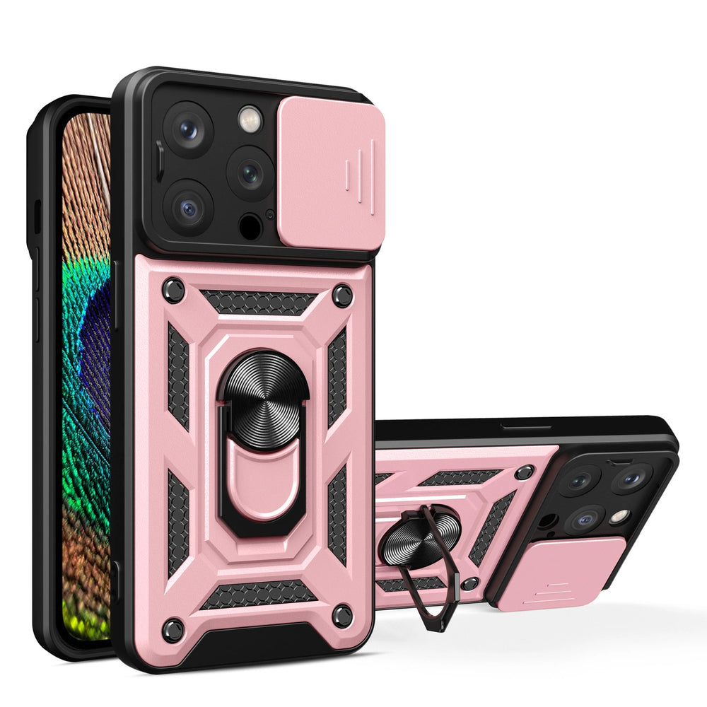 iPhone 15 Pro Max Hybrid Armor Camshield Case med Kickstand og Camera Cover - Pink .