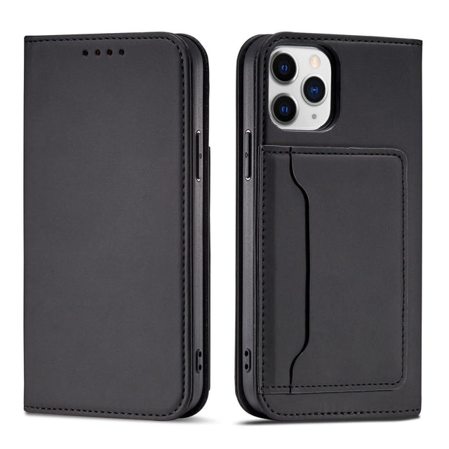 Magnet Card Case for iPhone 12 cover kort tegnebog kort stativ sort