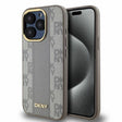 MagSafe iPhone 15 Pro Max-kasse af DKNY læder med krydsede mono mønstre - beige .