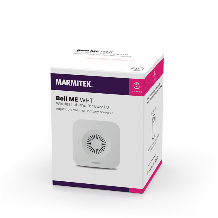 Buzz LO kan tilsluttes trådløst til denne trådløse dørklokke. Bell ME kører på batterier og kan derfor placeres hvor som helst i huset. Det betyder, at du også kan høre dørklokken fra haven eller loftet. Beslut selv, om du vil fortsætte med at bruge din eksisterende dørklokke. Sæt en Bell ME i hvert værelse. Du kan forbinde et ubegrænset antal Bell ME dørklokker til Buzz LO.