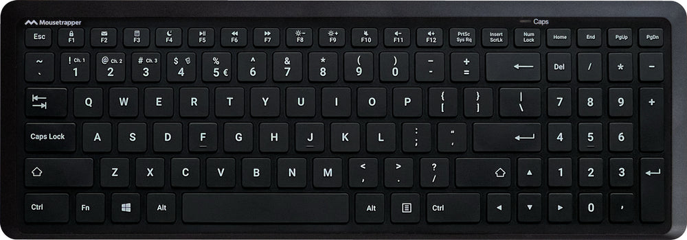 Mousetrapper Type Midi. Tastatur formfaktor: Fuld størrelse (100 %). Tastatur stil: Lige. Forbindelsesteknologi: Kabel & trådløs, Enhedsgrænseflade: USB + RF Wireless + Bluetooth, Tastaturopsætning: QWERTY, Anbefalet brug: Hjemme/kontor. Produktfarve: Sort