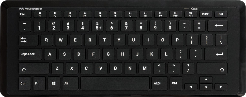 Mousetrapper Type Mini Wireless, Mini, Kabel & trådløs, USB + RF Wireless + Bluetooth, QWERTY, Sort