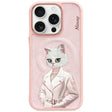This case from the Nimmy Fashion Cute Pet collection captivates with its creative design. The centerpiece of the design is an embroidered pattern depicting a cat in elegant faux leather clothing .