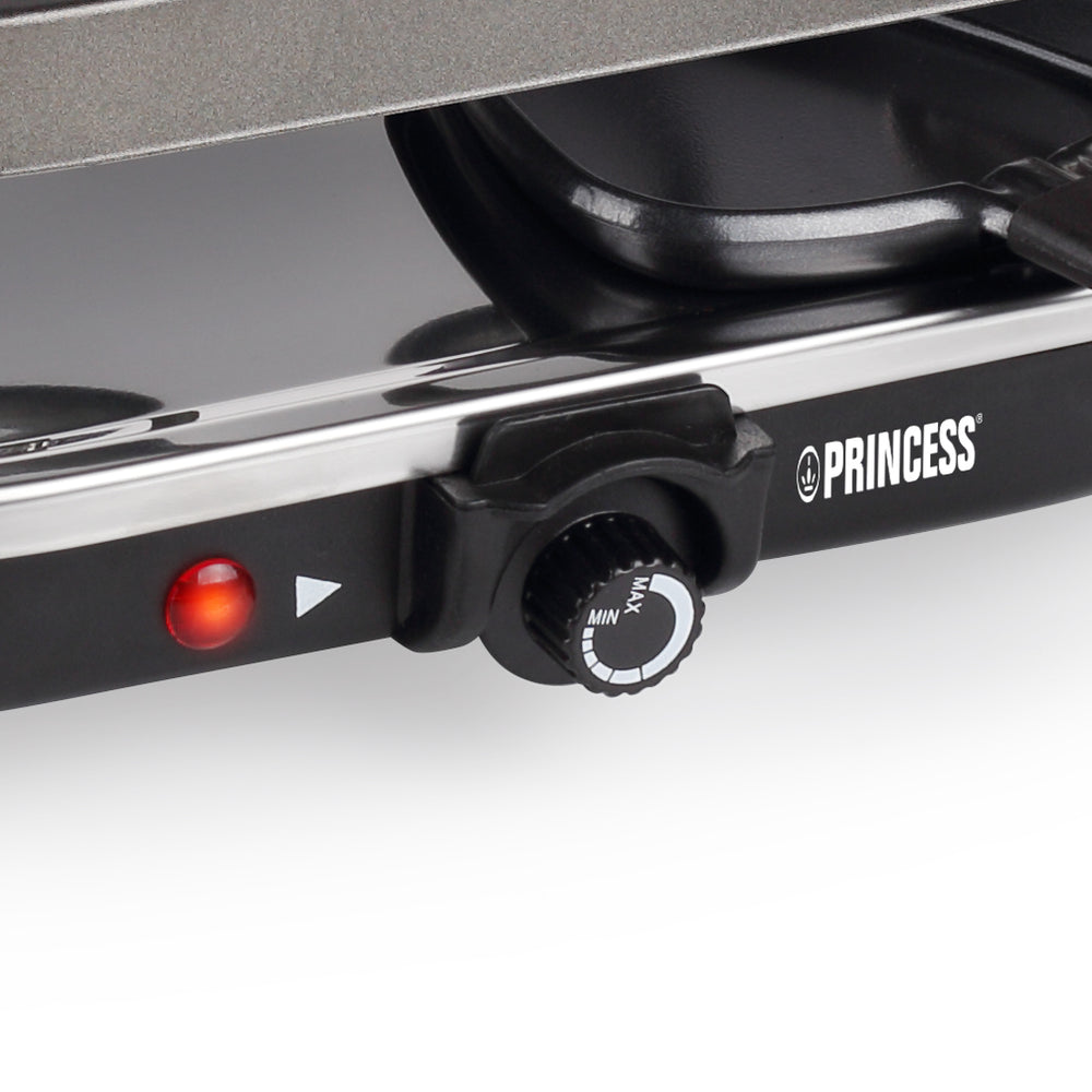 Princess 162700. Antal personer: 8 person(er), Produktfarve: Sort, Rustfrit stål, Formfaktor: Oval. Strøm: 1200 W, Vekselstrømsindgangsspænding: 220 - 240 V. Vægt: 2,44 kg. Pakkebredde: 134 mm, Pakkedybde: 490 mm, Pakkehøjde: 318 mm. Antal pander: 8 stk