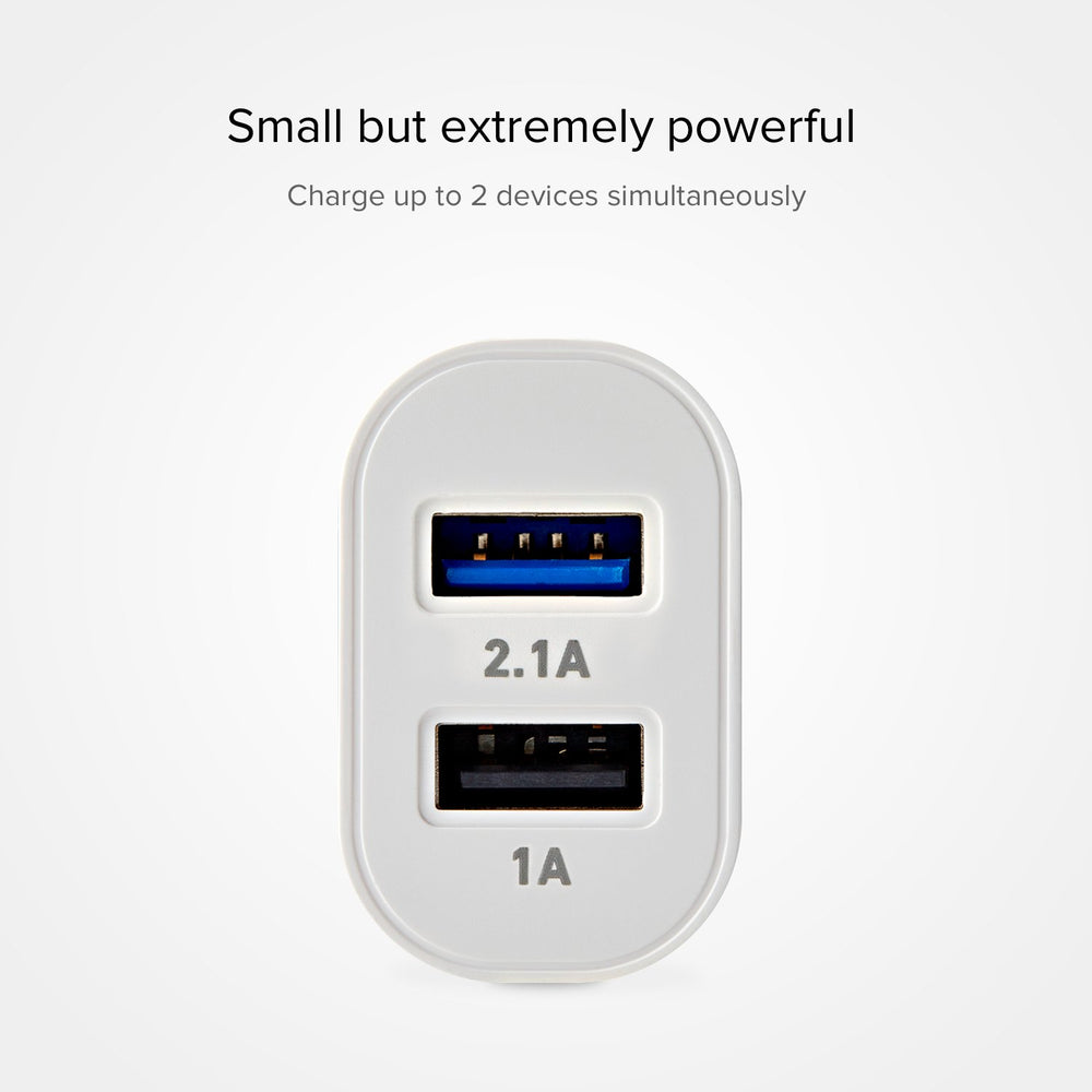 SBS 2100 mAh oplader. 2.1A + 1A. Hvid