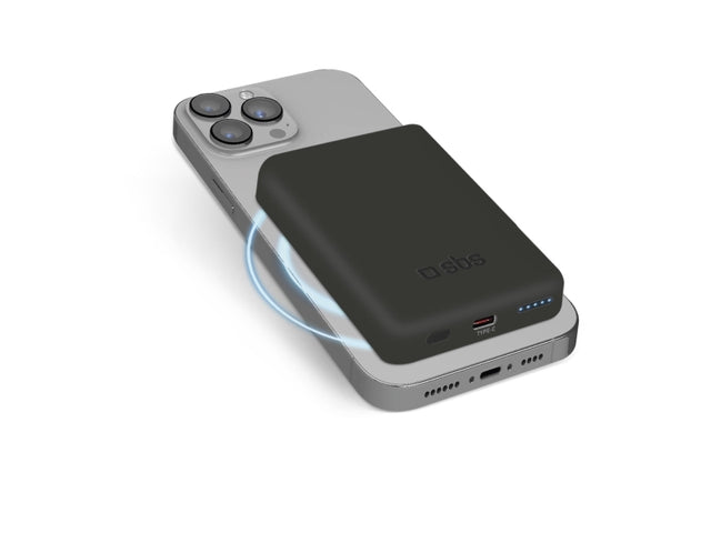SBS 5000 mAh trådløs magnetisk powerbank. Sort