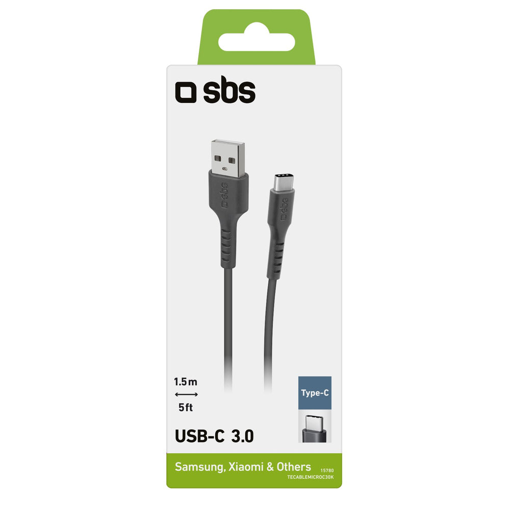 SBS USB C til USB A kabel. 1,5m. Sort .