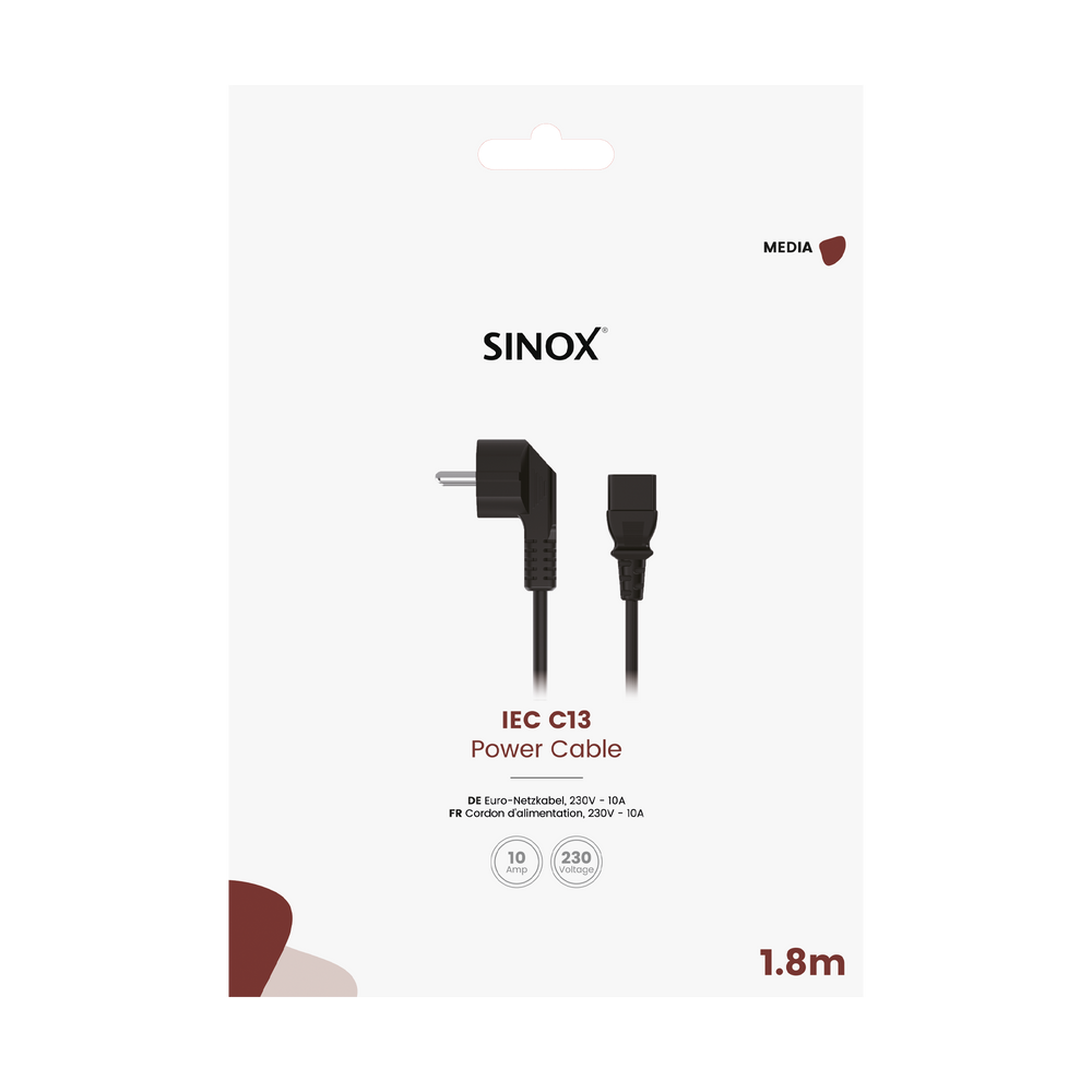 Sinox 3-pin strømkabel. 1,8m. Sort