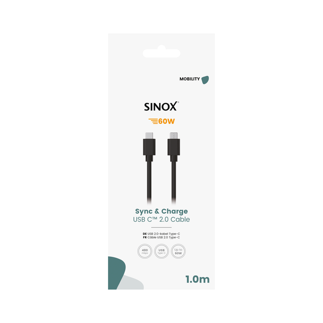 Sinox USB C kabel bruges bl.a. som ladekabel til MacBook™. Lader op til 60W