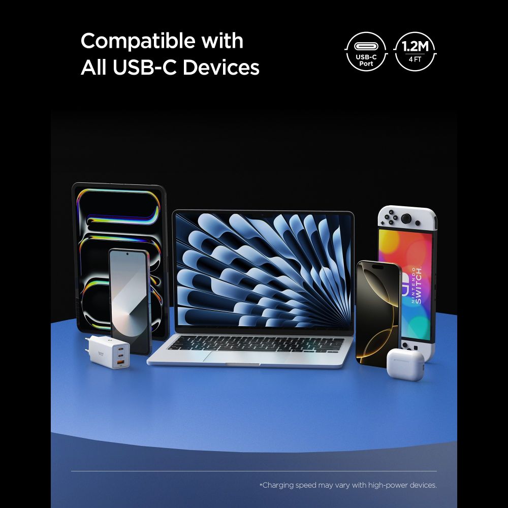 Das Spigen Essential EB24012CC ist ein hochwertiges Lade- und Datenübertragungskabel, das speziell für anspruchsvolle USB-C-Geräte – von Smartphones und Tablets bis hin zu Laptops – entwickelt wurde. Es unterstützt Power Delivery mit bis zu 240 W und ermöglicht so ein schnelles und stabiles Laden von Geräten mit hohem Strombedarf.
