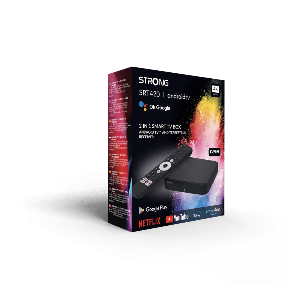 Strong SRT420 DVB-T2 modtager med Android TV .