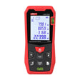 The UNI-T LM120A Laser Distance Meter is an advanced device designed with convenience and accuracy in mind. It offers millimeter precision measurements and a wide range of functions such as distance, area, volume measurement, as well as addition and subtraction operations for results. The LM120A is capable of storing as many as 99 groups of data and provides instant real-time display of results. Equipped with a physical level (horizontal and vertical), the meter guarantees even greater accuracy during operation. The ergonomic design ensures comfortable operation, and CE and UKCA certifications confirm the device's high quality and safe operation.