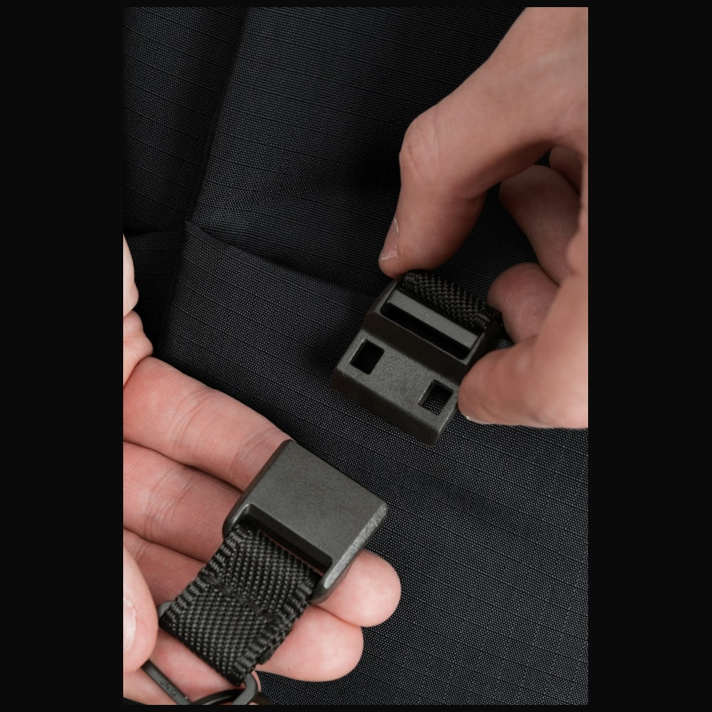 An anti-theft lock with a locking mechanism protects the contents from unwanted opening, and an integrated magnetic lanyard allows you to attach keys or an AirPods case to the bag so you always have them at hand.