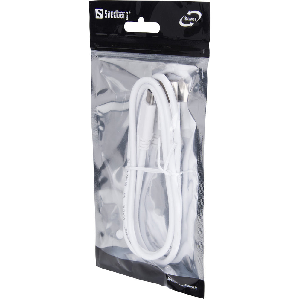 Sandberg USB-C 3.1 > USB-A 3.0 1M SAVER. Kabellængde: 1 m. Stik 1: USB C, Stik 2: USB A, USB version: USB 3.2 Gen 1 (3.1 Gen 1), Produktfarve: Hvid