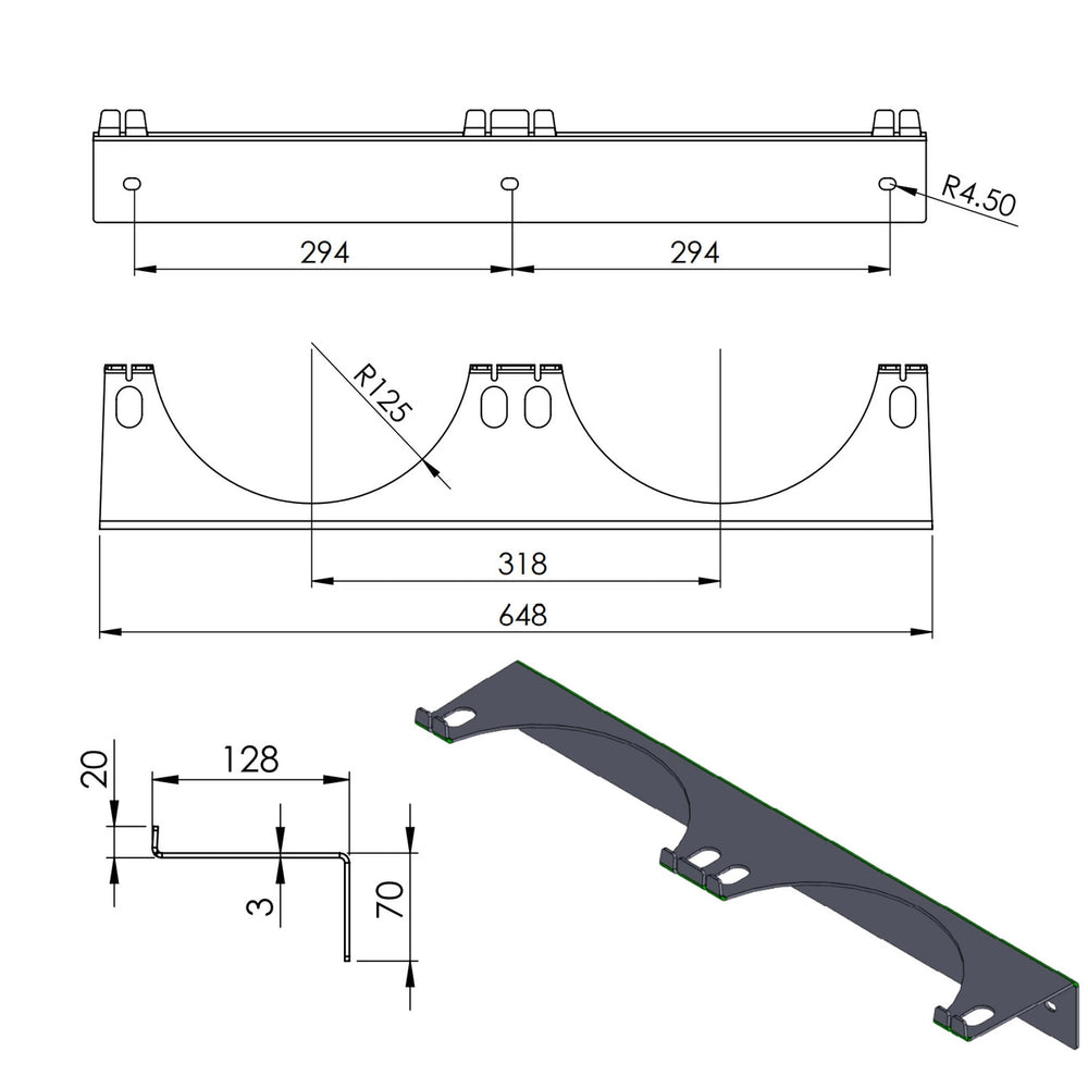 - - Dimensions (LxWxH) - 650 x 125 x 90 mm